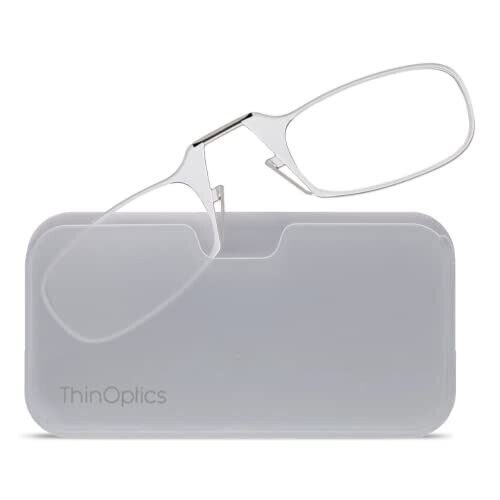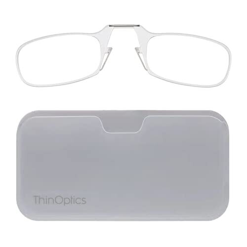 ThinOptics Universal Pod Rectangular Reading Glasses, Clear Frames/White Case, 44 mm.