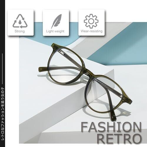 • Blue Light Blocking Classic Round Glasses Vintage Eyeglasses Black Frame (Green)
