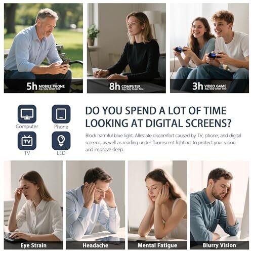 • Blue light blocking technology helps reduce digital eye strain for long computer, tablet, and phone sessions.