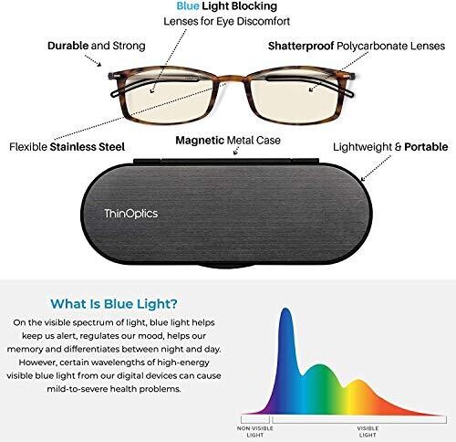 Thinoptics Frontpage Blue-Light Blocking Readers with Milano Case – Rectangle/Tortoise
