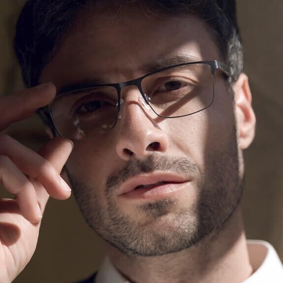 blue light blocking glasses for men. Model