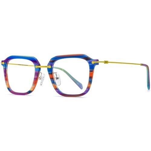 FONEX Acetate Titanium Glasses Frame Men 2024 New Square Eyeglasses combines luxury and durability with feather-light comfort thanks to ultralight titanium and acetate, offering a bold square silhouette ideal for daily wear, travel, and professional settings. Blue Stripe F85843 adds a stylish accent.