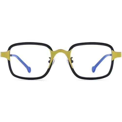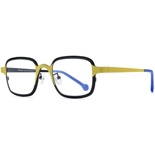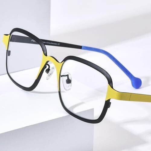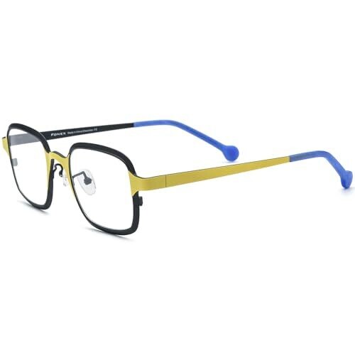 Stand out with the FONEX colorful pure titanium glasses frame in a retro square silhouette for all genders. Ultra-light titanium offers comfort and durability, with a bold black frame and yellow accents that blend vintage charm with modern flair.