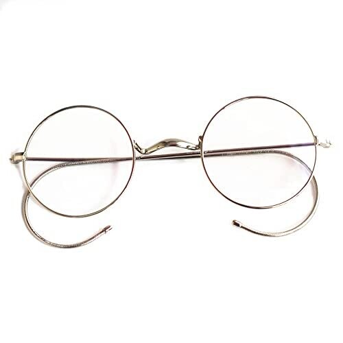 Vintage Round Eyeglasses Frames Antique Flexible Wire Rim Glasses Full Rim Rx able Optical Unisex, Silver, 42mm