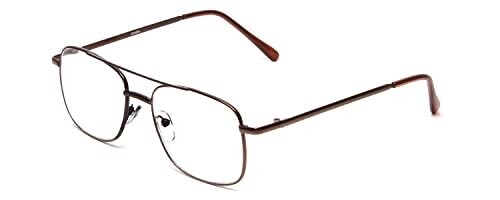 Calabria 8151 men's lightweight metal aviator reading glasses in brown +1.75 offer durable, stylish comfort for daily wear. The classic aviator silhouette pairs with any look, with all-day support, precise +1.75 lenses, and adjustable silicone nosepads for a secure fit.