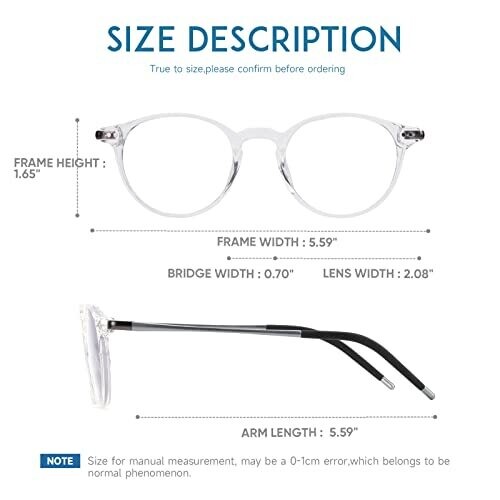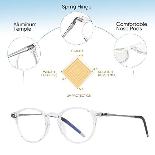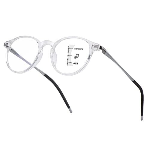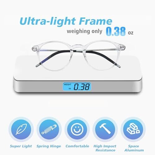 Exquisite round ultralight reading glasses offer durable comfort for men and women. They block blue light, provide UV protection, and feature progressive lenses for near, intermediate, and distance viewing, plus a spring hinge for a flexible, all-day fit.