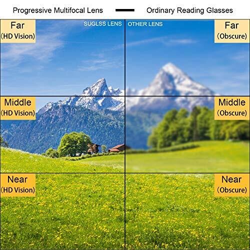 • Progressive multifocus design for seamless viewing from reading to distance without switching glasses.