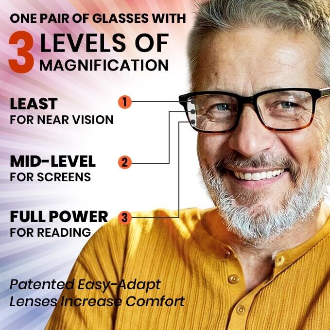 • AR coated lenses reduce glare and enhance clarity across multiple focal zones for comfortable all-day use.