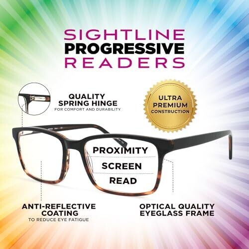 • Sightline Nathan Multifocus Progressive Reading Glasses feature a premium acetate frame for durable, lightweight wear.