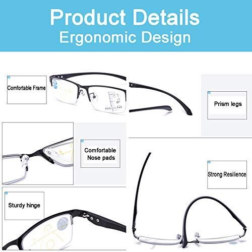 • Marketing crafted Reading Glasses with 50% blue light blocking and progressive multifocal design for a seamless transition from near to far vision.