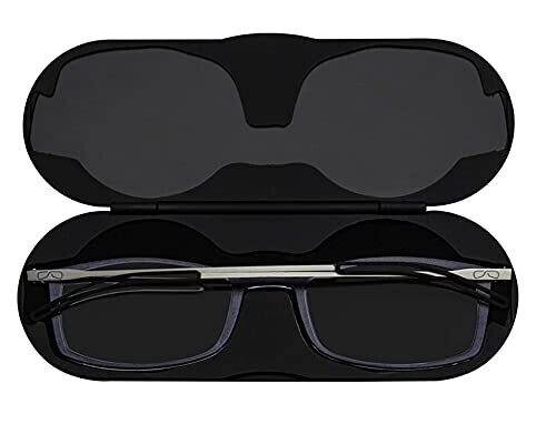 Thinoptics Universal Pod Case + Rectangular Reading Glasses – Black Case/Clear Frames, 44mm