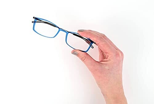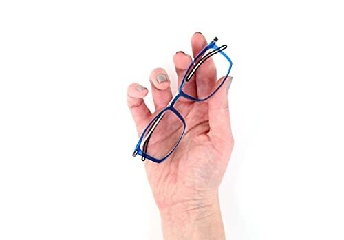 • Introducing the ThinOptics Brooklyn Reading Glasses 1.50 Rectangular Blue Frames with Milano Magnetic Case — the pinnacle of portable reading comfort and style.