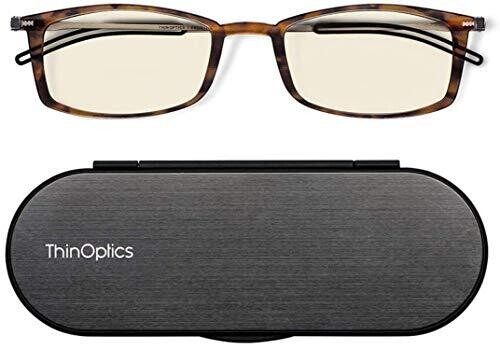 • ThinOptics Computer Reading Glasses with tortoiseshell frames offer a sleek, lightweight design for everyday use plus blue light blocking to help reduce eye strain from screens.