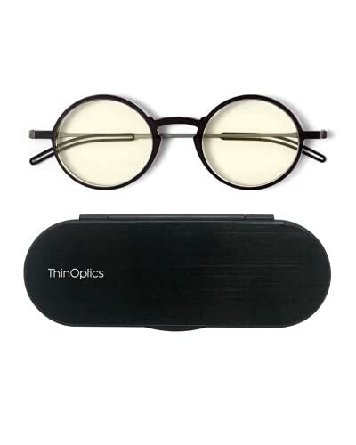 - ThinOptics Manhattan Blue Light Blocking Glasses Round Reading, Round/Black, 44 mm offer a stylish, round-framed reading solution with blue light blocking capabilities for everyday wear.