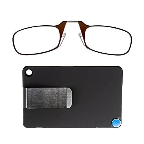 Thinoptics Keychain Case and Readers Rectangular Glasses, Black 44 mm