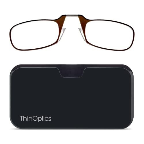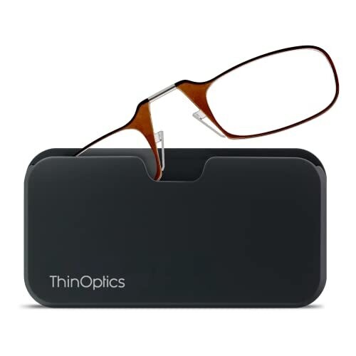 • ThinOptics Universal Pod Case + Rectangular Reading Glasses, Black Case/Brown Frames, 44 mm — a sleek, all-in-one vision solution designed for on-the-go versatility and effortless style.