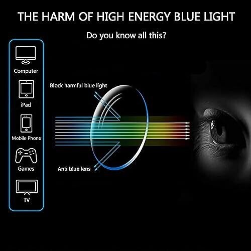 Suitable for reading, gaming, phone use, computer work, and TV viewing; blocks blue light and UV rays to help relieve eye fatigue.