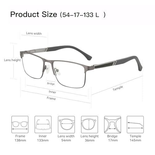 • Zenottic Blue Light Glasses Men: Blue-Light Blocking Metal Frame Eyeglasses (Grey)