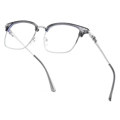 QECEPEI Half Rimless Metal Eyewear Frames with Blue Light Blocking Lenses
