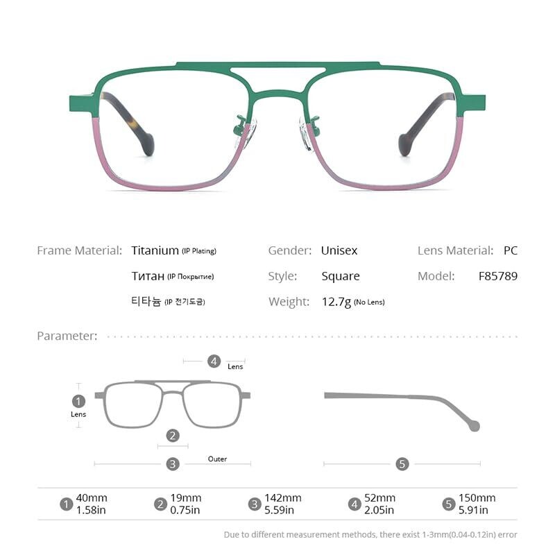 • FONEX Colorful Pure Titanium Glasses Frame: a vibrant, lightweight style crafted for both men and women to elevate any look.