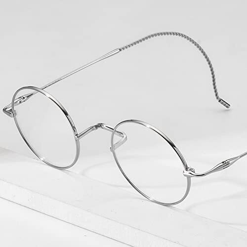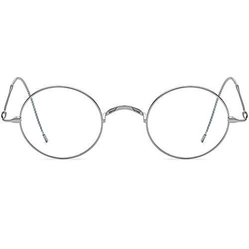 FONEX Titanium Eyewear Frame for Men, Vintage Round Ultralight, F85725 Silver