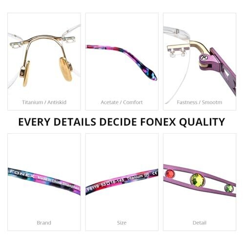 • FONEX Titanium Rimless Eyeglasses for Women 6119 Green 52-18-145
