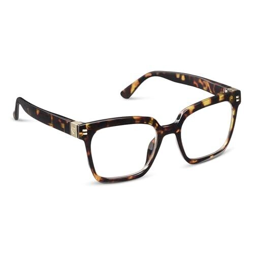Experience Peepers by PeeperSpecs Adults Montage Progressives in Tortoise, 1.5, offering natural near-to-far vision for computer work, distance viewing, and reading. Lightweight frames with spring hinges and anti-scratch coating, travel-friendly with a free canvas case.
